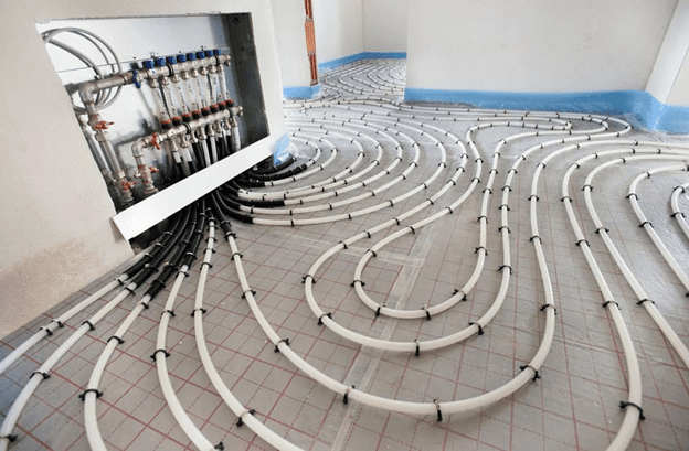 1. التدفئة تحت البلاط (Underfloor Heating)